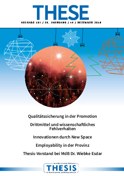 Ausgabe 107 Inhalt Qualitätssicherung in der Promotion Drittmittel und wissenschaftliches Fehlverhalten Innovationen durch New Space Employability in der Provinz Thesis-Vorstand bei MdB Dr. Wiebke Esdar